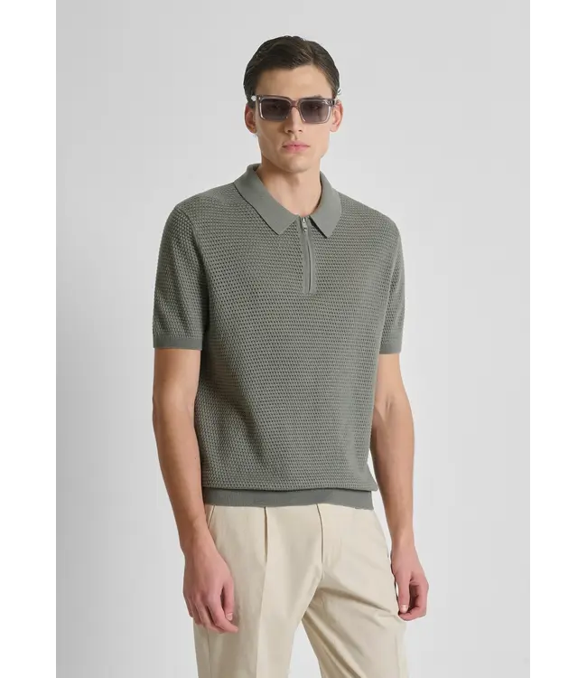 Antony Morato Antony Morato MMSW01590-YA200082 REGULAR-FIT SHORT-SLEEVED POLO SHIRT IN A SOFT COTTON BLEND WITH ZIP AGAVE GREEN - REGULAR FIT