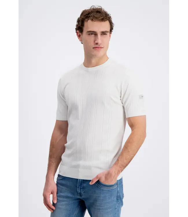 Een modern t-shirt, ideaal voor warme dagen met zijn gestreepte, gebreide structuur en luchtige viscosemix. De verticale lijnen zorgen voor een flatterende fit, terwijl het Gabbiano-logo onderaan een subtiel merksignatuur geeft.