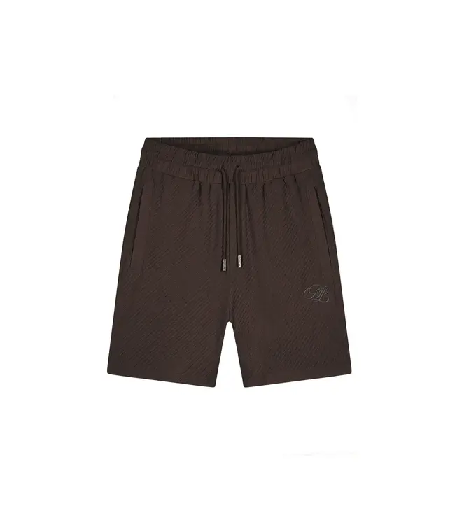 De Malelions Men Diagonal Seersucker Shorts in de kleur donkerbruin is een stijlvolle en comfortabele keuze voor je garderobe. Deze short is vervaardigd van een hoogwaardige seersucker-stof met een diagonale structuur, wat zorgt voor een verfijnde textuur en een luchtig gevoel. Het model heeft een ontspannen regular fit en is voorzien van een elastische tailleband met een verstelbaar trekkoord voor een optimale pasvorm. Het subtiele 'ML'-logo op de pijp maakt deze short perfect om te combineren met het bijpassende shirt voor een complete, verzorgde look.
