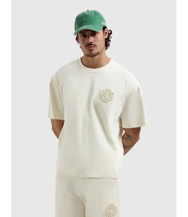 The Emblem Badge T-shirt comes in a boxy fit, crafted from 100% cotton jersey for a soft yet structured feel. A tonal chain stitch emblem badge sits on the chest, adding subtle texture with a defined character. The clean and pronounced design creates a clear visual statement while remaining refined. Designed to pair effortlessly as a co-ord set with the Emblem Badge Sweat Shorts.