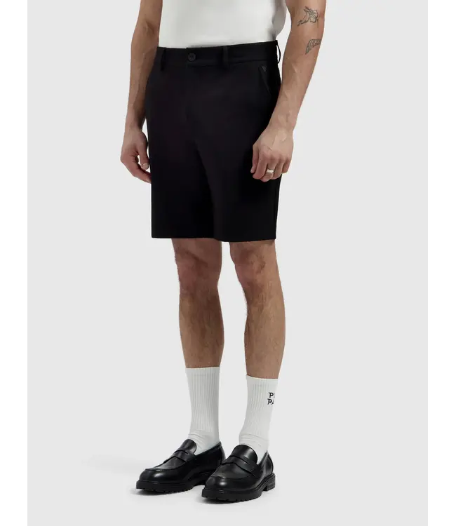 The Punta Smart Shorts come in a regular fit with a tailored leg, crafted from a refined blend of 68% viscose, 27% polyester and 5% spandex for comfort with a polished look. Designed with a zip fly and an elasticated adjustable waistband for ease of wear. Side pockets and back pockets add function, while a subtle tonal signature triangle above the left pocket finishes the piece with quiet precision.
