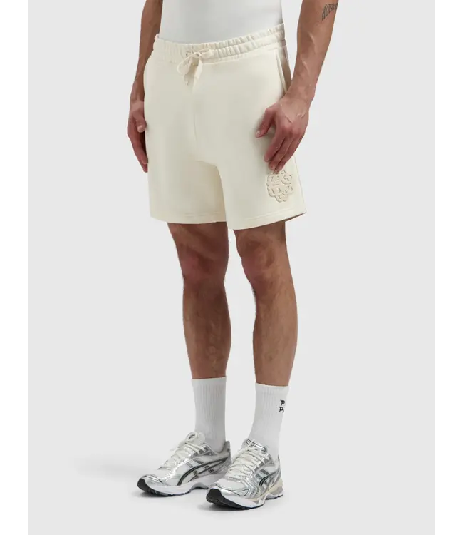 The Emblem Badge Sweat Shorts come in a regular fit, crafted from cotton sweat for a soft yet structured feel. A tonal chain stitch emblem badge is placed on the left leg, adding subtle texture with a defined character. The clean and pronounced design creates a clear visual statement while remaining refined. Designed with an elastic waistband adjustable with drawstrings, finished with side pockets with hidden zips and a clean fake back pocket. Designed to pair effortlessly as a co-ord set with the Emblem Badge T-shirt.